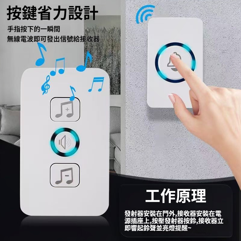 【家用無線門鈴】超長續航 一年只換一次電磁 32種鈴聲音樂 一年用不到2度電 支持110-220v電壓 聲音高達85分貝 不怕聽不見 家裡有老人或者總是聽不見有人敲門 它就是最好的選擇!