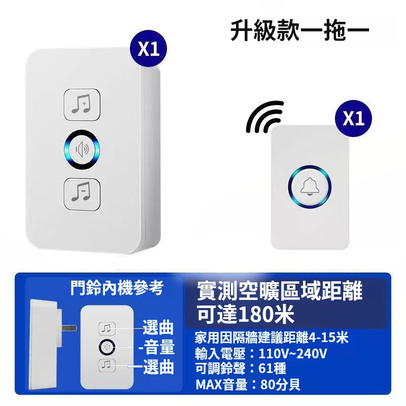 [1]「遠距離無線門鈴」升級款1拖1 NT$980