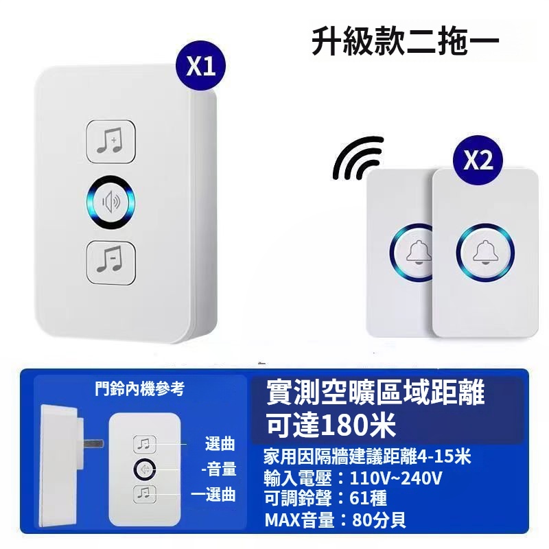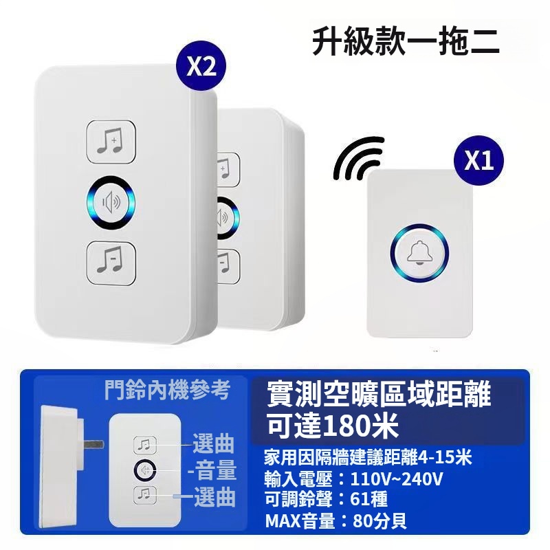 [1]「遠距離無線門鈴」升級款2拖1 NT$1180