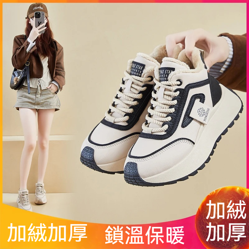 2025冬季新款加絨休閒鞋女ins韓版時尚百搭厚底增高保暖防滑棉鞋