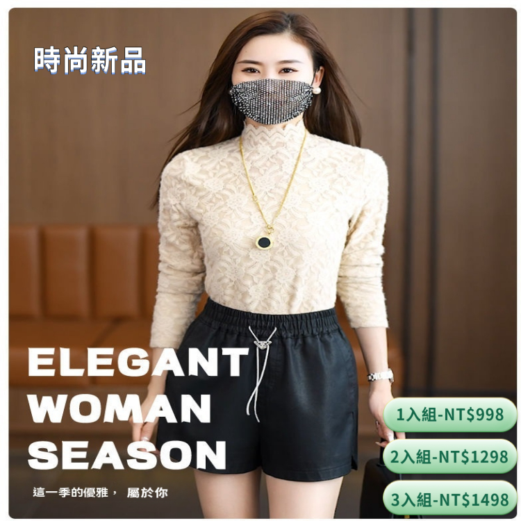 [1]【半高領蕾絲加絨打底衫】 1入組-NT$998