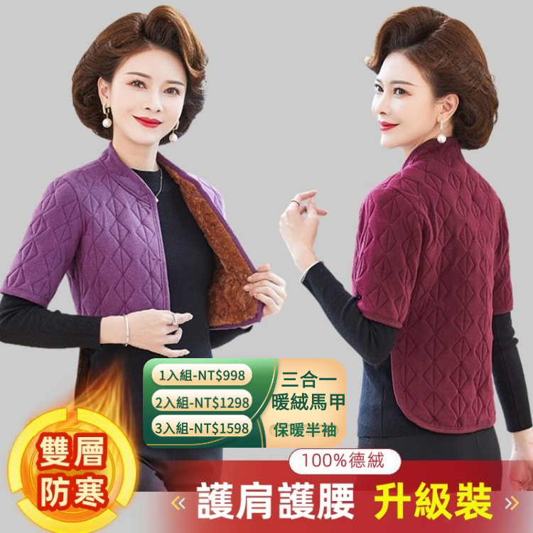 冬季爆款馬甲 加绒三合一保暖半袖 護肩護腰馬甲 中老年女士防寒保暖馬甲