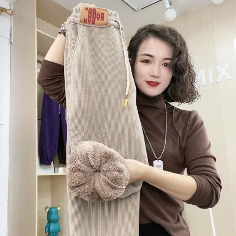 加絨哈倫休閒褲 彈力面料不緊繃 不易起球 耐洗耐磨 保暖修身兩不誤 顯高顯瘦顯腿長